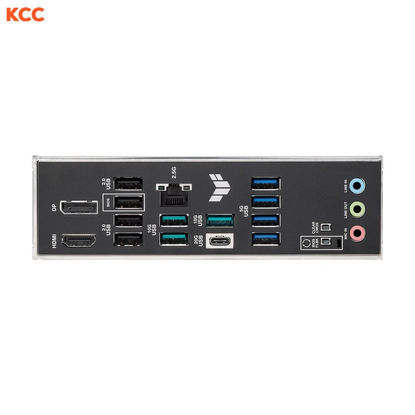3 x USB 10Gbps ports (3 x Type-A) 4 x USB 5Gbps ports (4 x Type-A) 4 x USB 2.0 ports (4 x Type-A) 1 x DisplayPort 1 x HDMI™ port 1 x Realtek 2.5Gb Ethernet port 3 x Audio jacks 1 x BIOS FlashBack™ button 1 x Clear CMOS button |