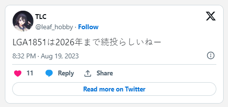 Trong khi người rò rỉ cảnh báo rằng các tweet chưa được xác minh hoàn toàn, nguồn đã từng tiết lộ thông tin bí mật trước đó và chứng minh chính xác. Loạt tweet mới nhất của TLC cho thấy nền tảng LGA-1851 của Intel sẽ tiếp tục cho đến năm 2026, đề xuất rằng công ty có kế hoạch phát hành ít nhất ba dòng CPU, giả định họ duy trì chu kỳ một năm. Tuy nhiên, cần lưu ý rằng điều này có thể không nhất thiết ám chỉ kiến trúc mới, như thể hiện bởi bản cập nhật Raptor Lake sắp tới.