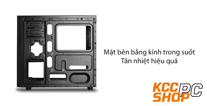 Bên cạnh đó, quạt PC giúp tản nhiệt và làm mát các linh kiện bên trong hiệu quả. Case cũng hỗ trợ lắp đặt card đồ hoạ kích thước 250mm và hệ thống tản nhiệt cho CPU. Đặc biệt nguồn của thùng case được đặt ở ngang phần đáy mang đến sự tiện lợi vượt trội trong quá trình tháo lắp và di chuyển.