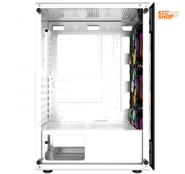 Vỏ Case A8 White 3Fan RGB gây ấn tượng ngay từ cái nhìn đầu tiên với tông màu trắng tinh khôi, tạo nên vẻ đẹp sang trọng và hiện đại. Mặt trước của case được thiết kế dạng lưới thoáng khí, không chỉ mang lại tính thẩm mỹ cao mà còn tối ưu hóa khả năng tản nhiệt cho hệ thống. Kính cường lực bên hông cho phép người dùng phô diễn các linh kiện bên trong, tạo nên một tổng thể hài hòa và bắt mắt.